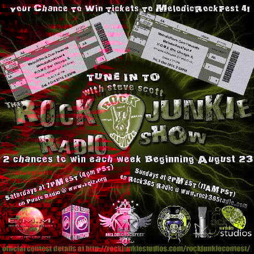 The next Episode of the Rock Junkie radio show, to begin airing 23 Aug, will feature a special MRF4 showcase and your chance to win tickets to the October event (www.melodicrockfest.com)