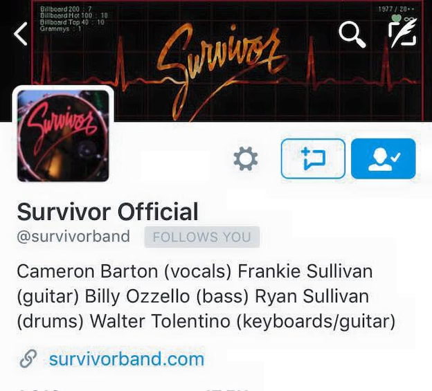 "To all my dear fans, Bitter sweet news that I am no longer a member of Survivor. Just wanted to share that with you. There is no longer a place for me in the band. So I'll be moving on and direct all my energies to my solo project. And thank you for all your support. Peace. Dave."
