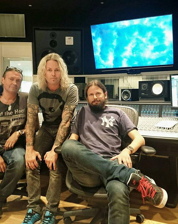 Posted today at the band's Facebook is the picture featured (Jamie Borger with Producer Peter Mansson & Anders Wikström)