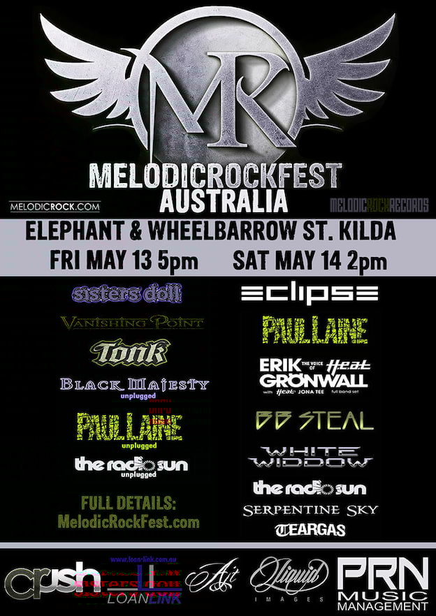 MelodicRockFest Australia will make its local debut in Melbourne on May 13 and 14, 2016 at the Elephant & Wheelbarrow in St. Kilda.